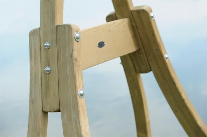 AMAZONAS stands like this one are produced from high quality spruce (or larch) wood. They are all subjected to a bath impregnation process which gives the wood a green/olive hue and protects the wood from weathering, insects and fungi - thus prolonging the life of the stand. The metal fittings have been galvanised to make them stainless.