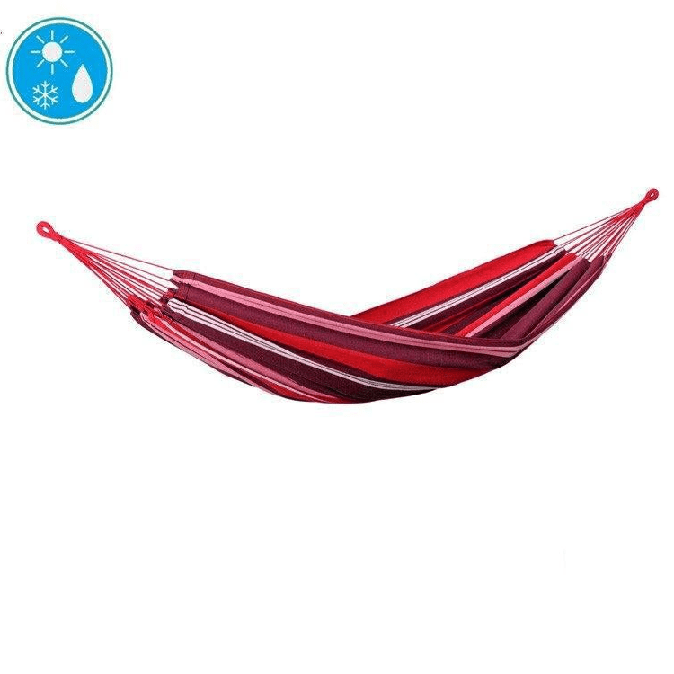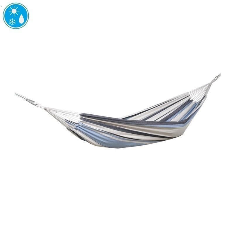 Because: The Salsa Marine Hammock is typical Brazilian style made of weatherproof and UV-resistant EllTex material, extra long-lasting and yet as soft as cotton. The structure leaves a deep sag in the centre meaning you can lie in the hammock diagonally.
